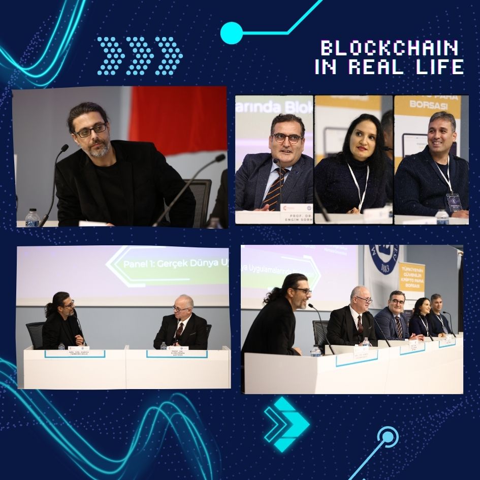 The afternoon session commenced with a panel discussion titled "Blockchain in Real World", moderated by Researcher and Author Hamza Yardımcıoğlu, featured distinguished guests including Prof. Dr. B. Gültekin Çetiner, the founder of Marmara Blockchain, Prof. Dr. Engin Sorhun from the Faculty of Economics at Marmara University, Prof. Dr. Özlem Şenvar from the Department of Industrial Engineering at Marmara University, and Emre Yetişkin, the CEO of WhiteBIT Turkey. The panelists shared their insights on the significance and practical real applications of blockchain technology, following the moderation of the session by Researcher and Author Hamza Yardımcıoğlu.